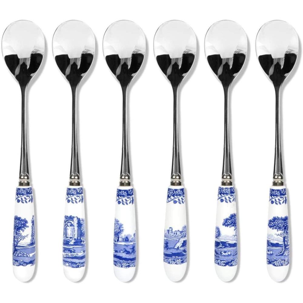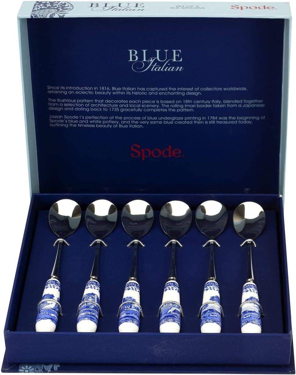 PRODUCT SPECIFICATIONS: Package contains set of (6) Spode Blue Italian Teaspoons. Made of Stainless and Fine Porcelain. Dimensions: 6 Inches each. Handwash Only. Features Spode's iconic Blue Italian design. Made by our trusted partner outside the UK to Portmeirion's high standards.
