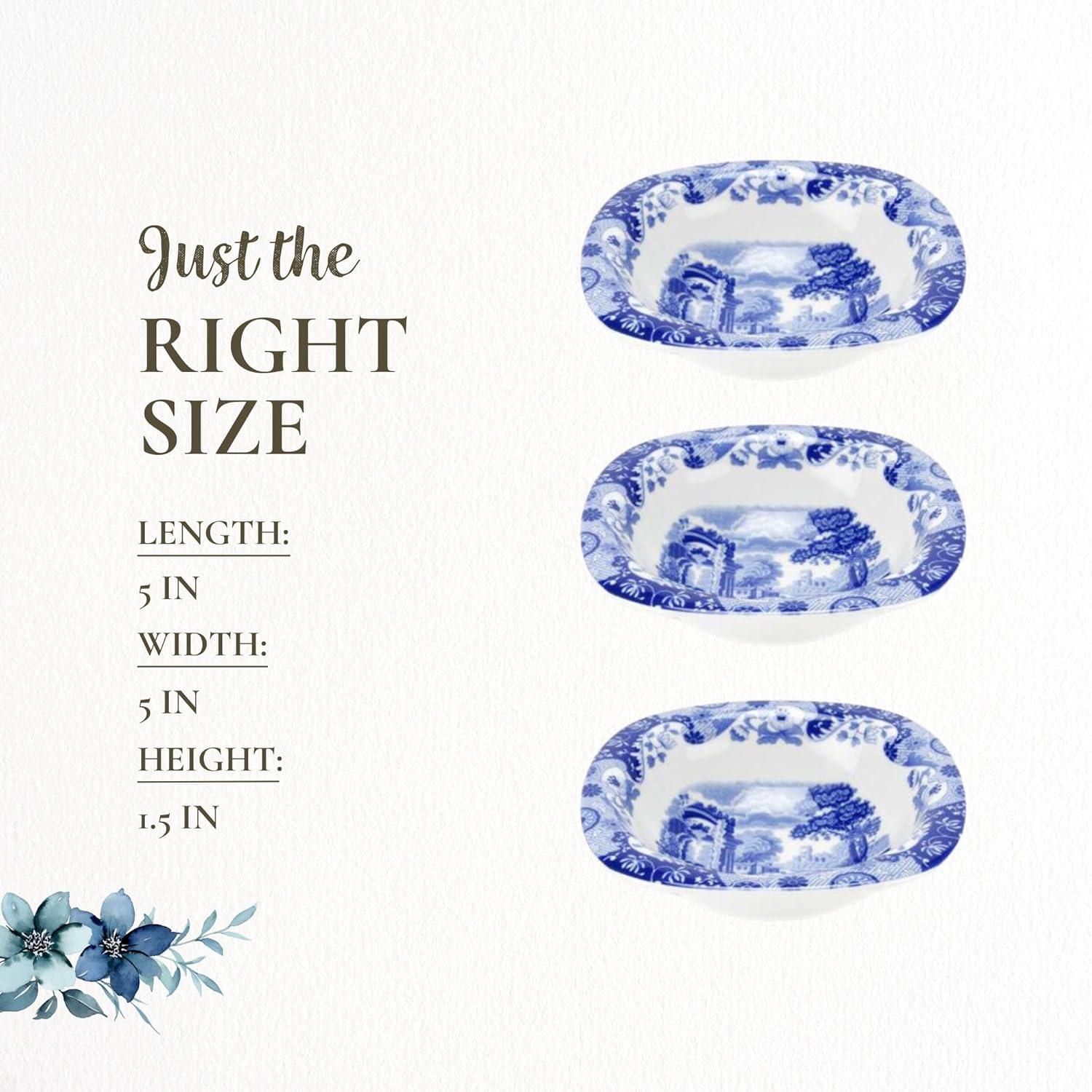 Elegant Oriental Design: Each dip bowl in this set features the signature Blue Italian oriental dinnerware pattern, showcasing a historic Imari border and countryside scene.