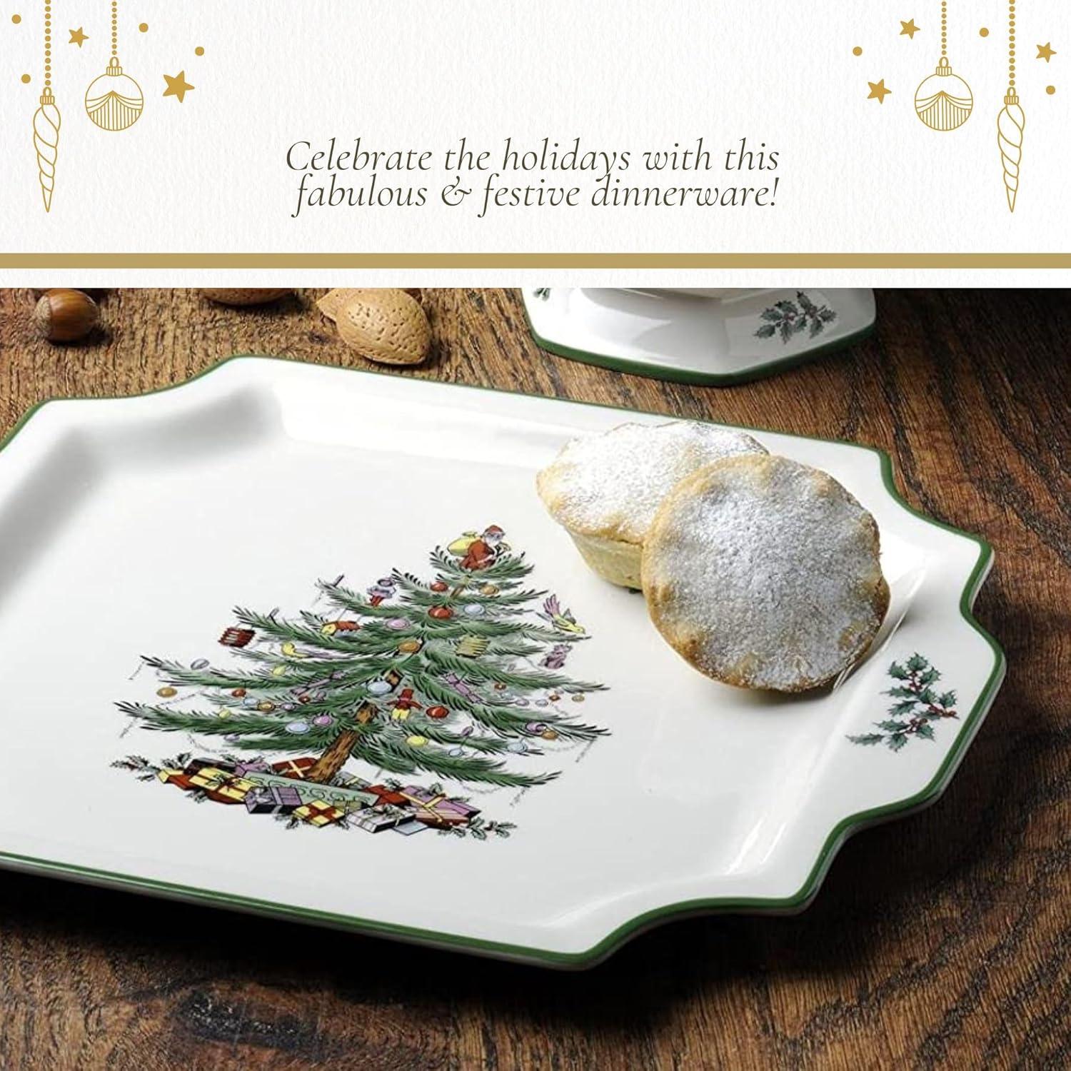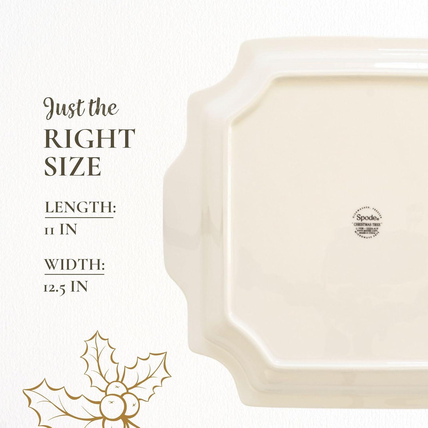 Charming Holiday Design: This 12.5-inch Christmas serving platter features Spode's renowned Christmas Tree motif with a distinctive two-tone red border, making it a delightful addition to any festive table setting.