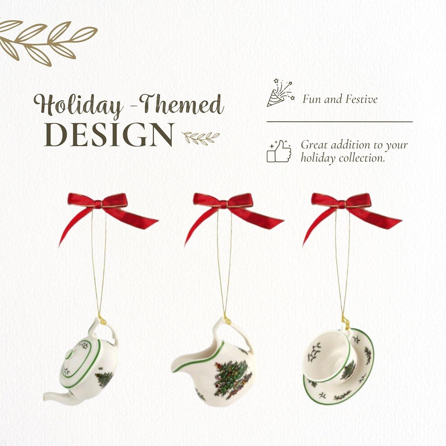 Spode Christmas Tree 3-Piece Tea Set Ornament, Durable Holiday Ornament for Festive Decor & Winter Wonderland Display – Sleek Seasonal Ornaments for Tree, Mantel, Holiday Home Decoration
