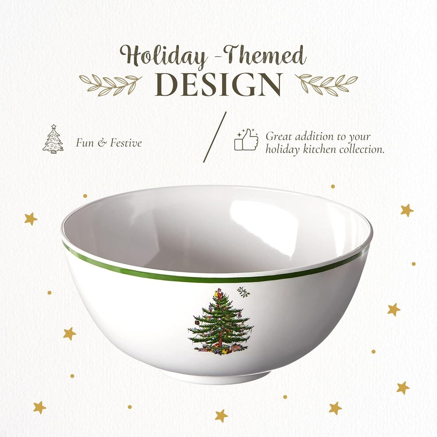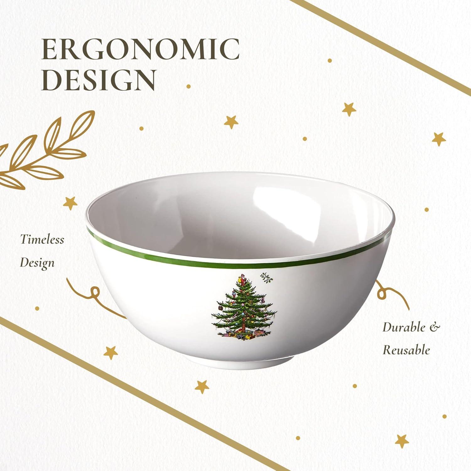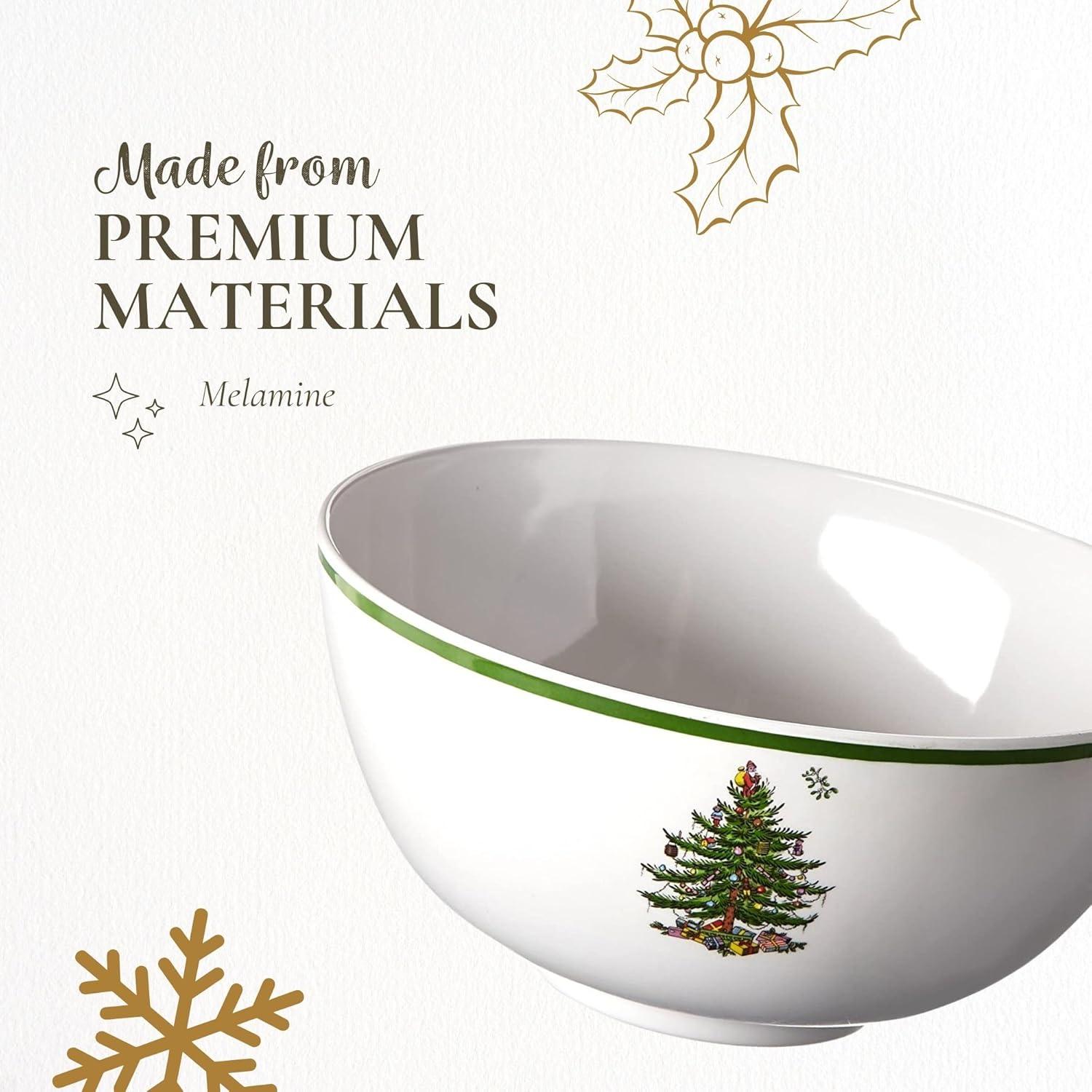 Spode Christmas Tree 6-Inch Melamine Bowls - Set of 4 Festive Bowls for Soup, Dessert, Holiday Dishes - Durable, Dishwasher Safe - Versatile Tableware for Indoor, Outdoor Christmas Gatherings(Christmas Tree Melamine Deep Bowl)