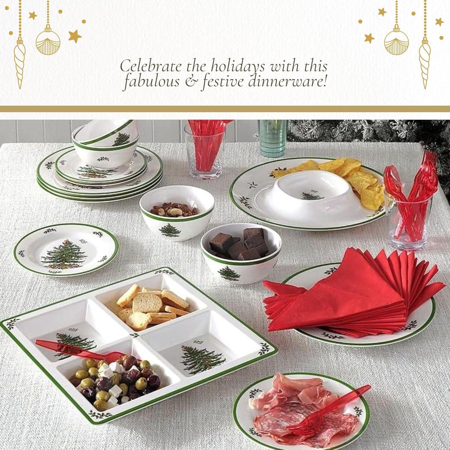 Spode Christmas Tree 6-Inch Melamine Bowls - Set of 4 Festive Bowls for Soup, Dessert, Holiday Dishes - Durable, Dishwasher Safe - Versatile Tableware for Indoor, Outdoor Christmas Gatherings(Christmas Tree Melamine 4 Section Tray)
