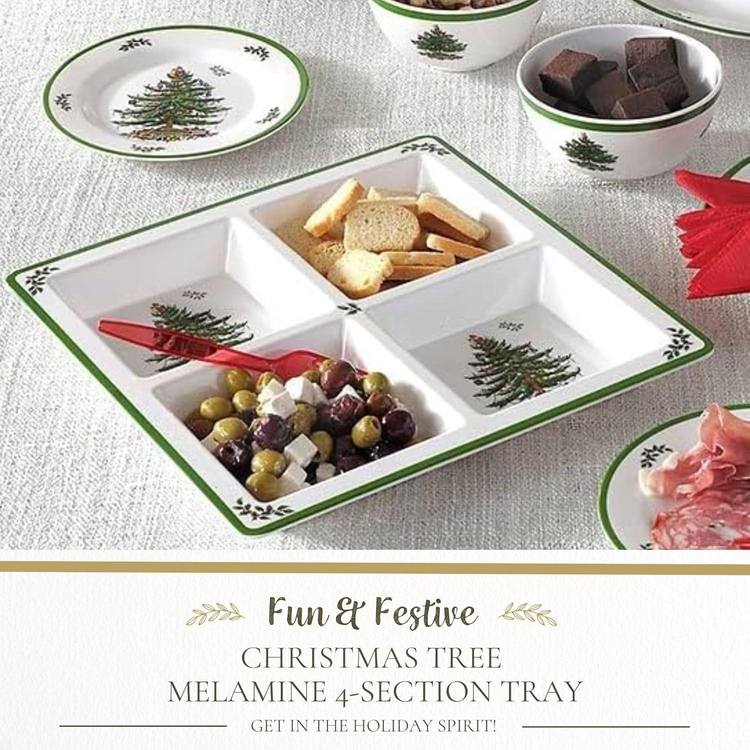imageSpode Christmas Tree 6Inch Melamine Bowls  Set of 4 Festive Bowls for Soup Dessert Holiday Dishes  Durable Dishwasher Safe  Versatile Tableware for Indoor Outdoor Christmas GatheringsChristmas Tree Melamine 4 Section Tray