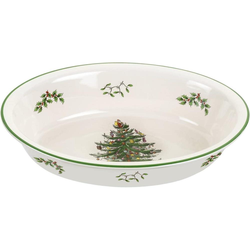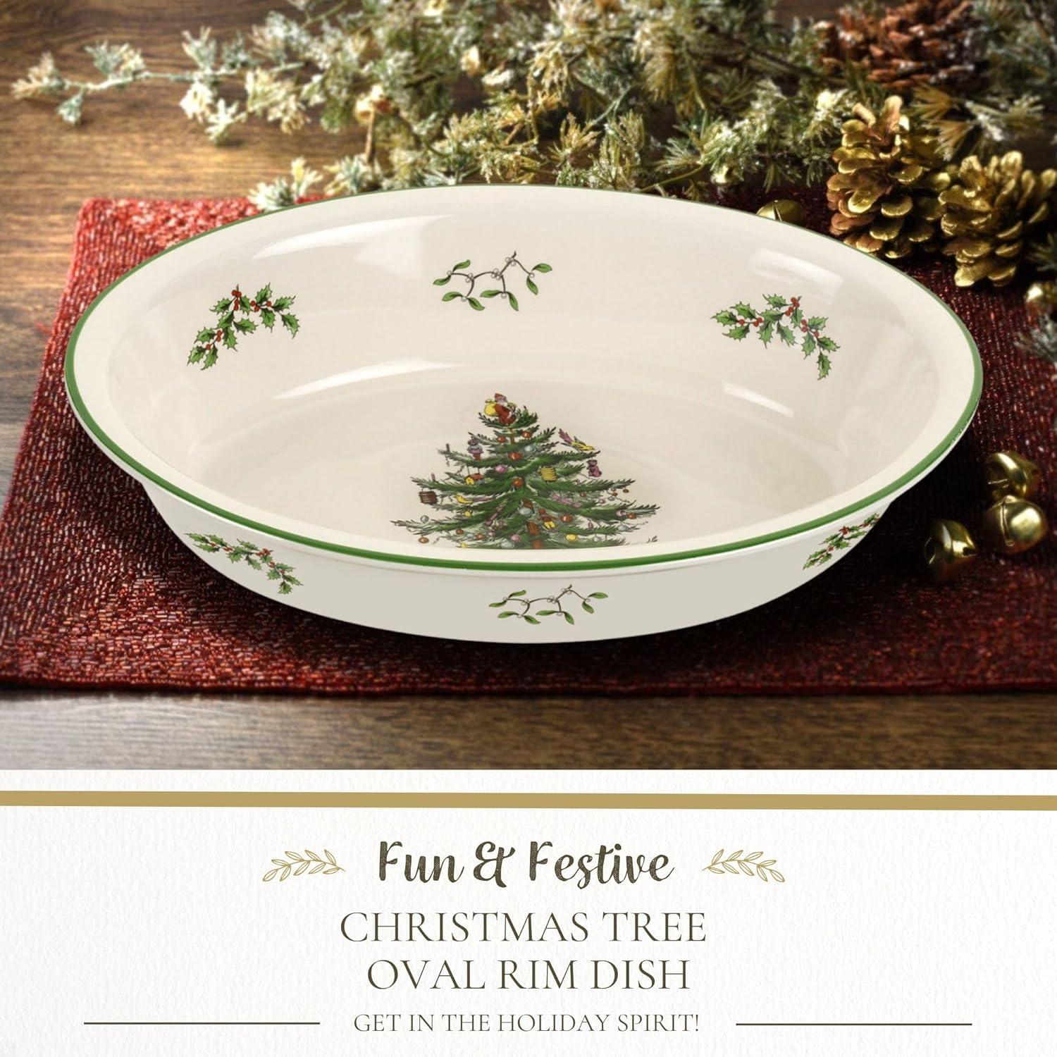 imageSpode Christmas Tree Divided Dish  115quot Festive Serving Tray for Holiday Parties Seasonal Events  Fine Earthenware Decorative Christmas Dinnerware Microwave ampamp Dishwasher SafeChristmas Tree Oval Rim Dish
