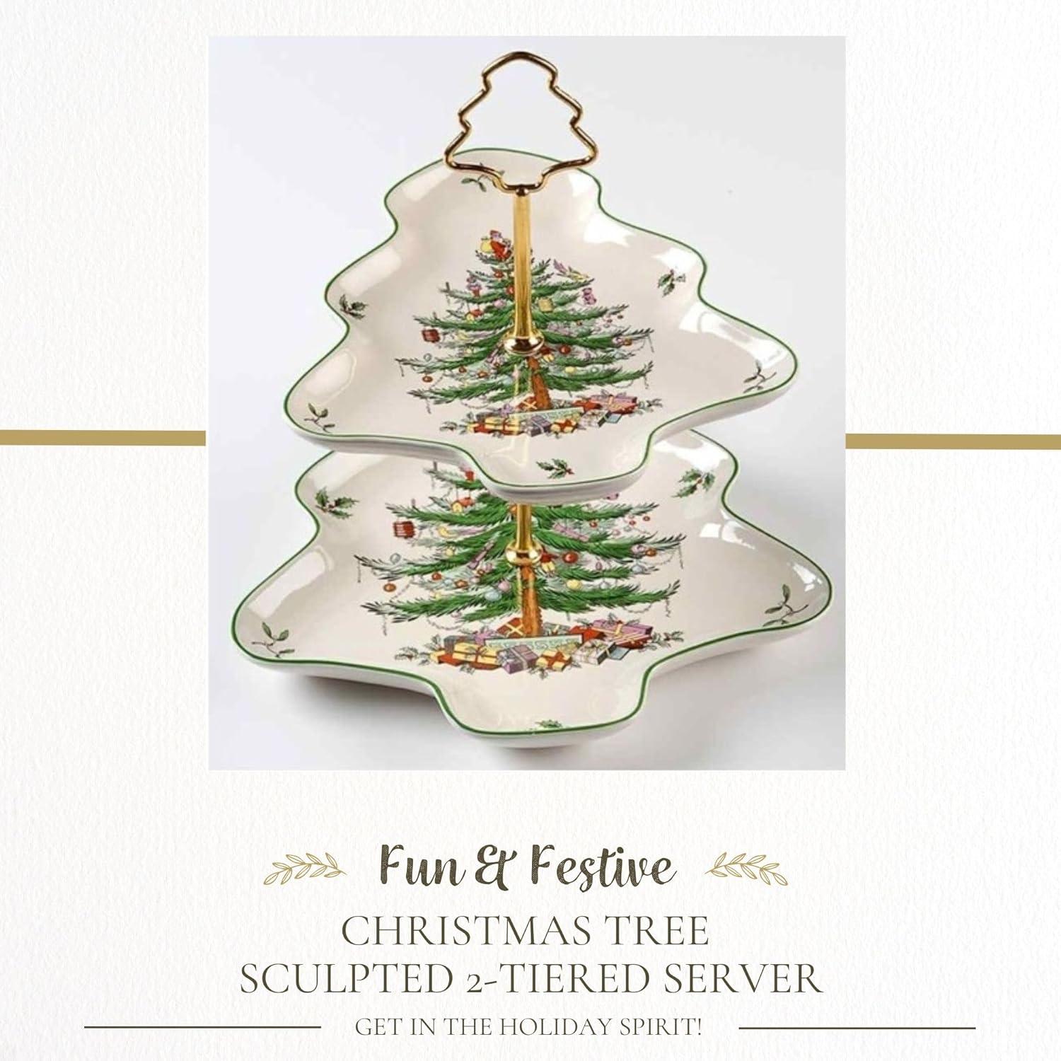 Spode Christmas Tree Divided Dish – 11.5″ Festive Serving Tray for Holiday Parties, Seasonal Events – Fine Earthenware, Decorative Christmas Dinnerware, Microwave & Dishwasher Safe(Christmas Tree Sculpted 2-Tier Server)
