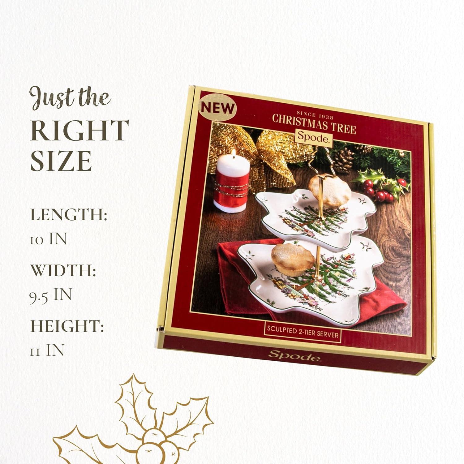 Spode Christmas Tree Divided Dish - 11.5" Festive Serving Tray for Holiday Parties, Seasonal Events - Fine Earthenware, Decorative Christmas Dinnerware, Microwave & Dishwasher Safe(Christmas Tree Sculpted 2-Tier Server)