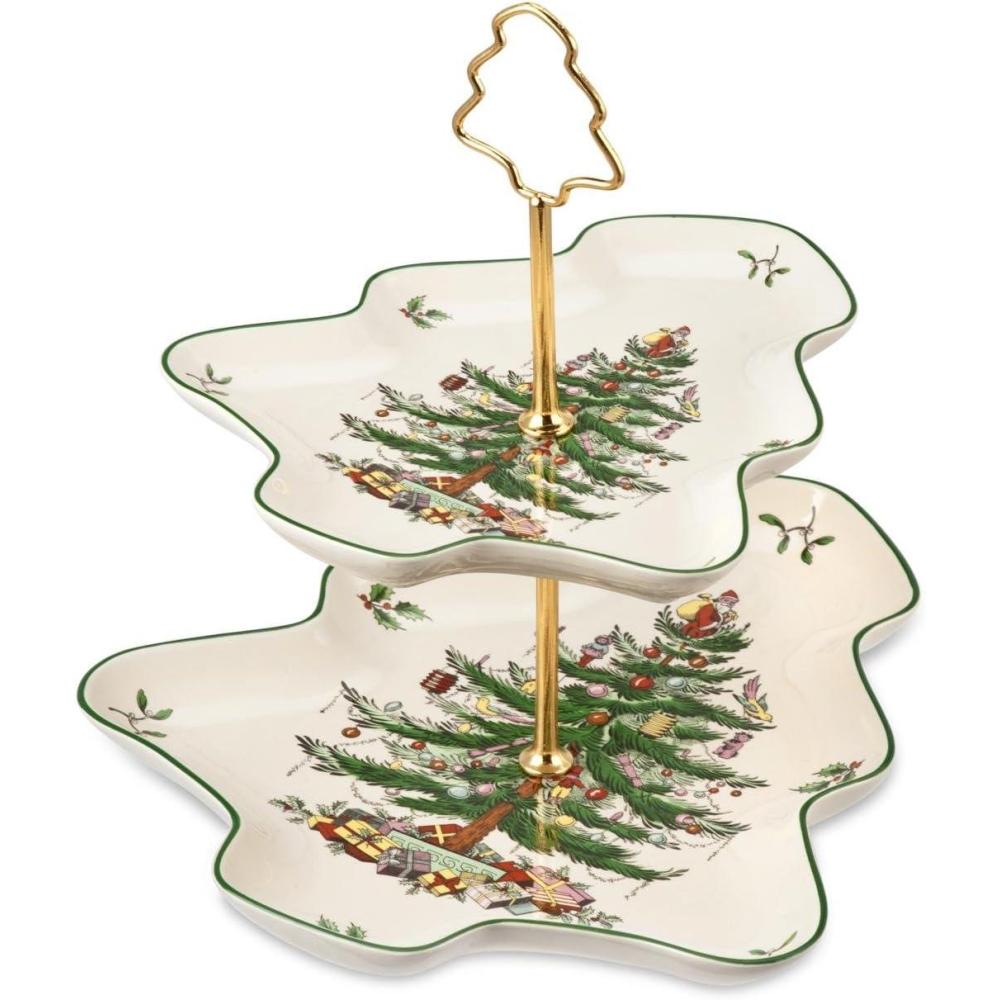 imageSpode Christmas Tree Divided Dish  115quot Festive Serving Tray for Holiday Parties Seasonal Events  Fine Earthenware Decorative Christmas Dinnerware Microwave ampamp Dishwasher SafeChristmas Tree Sculpted 2Tier Server
