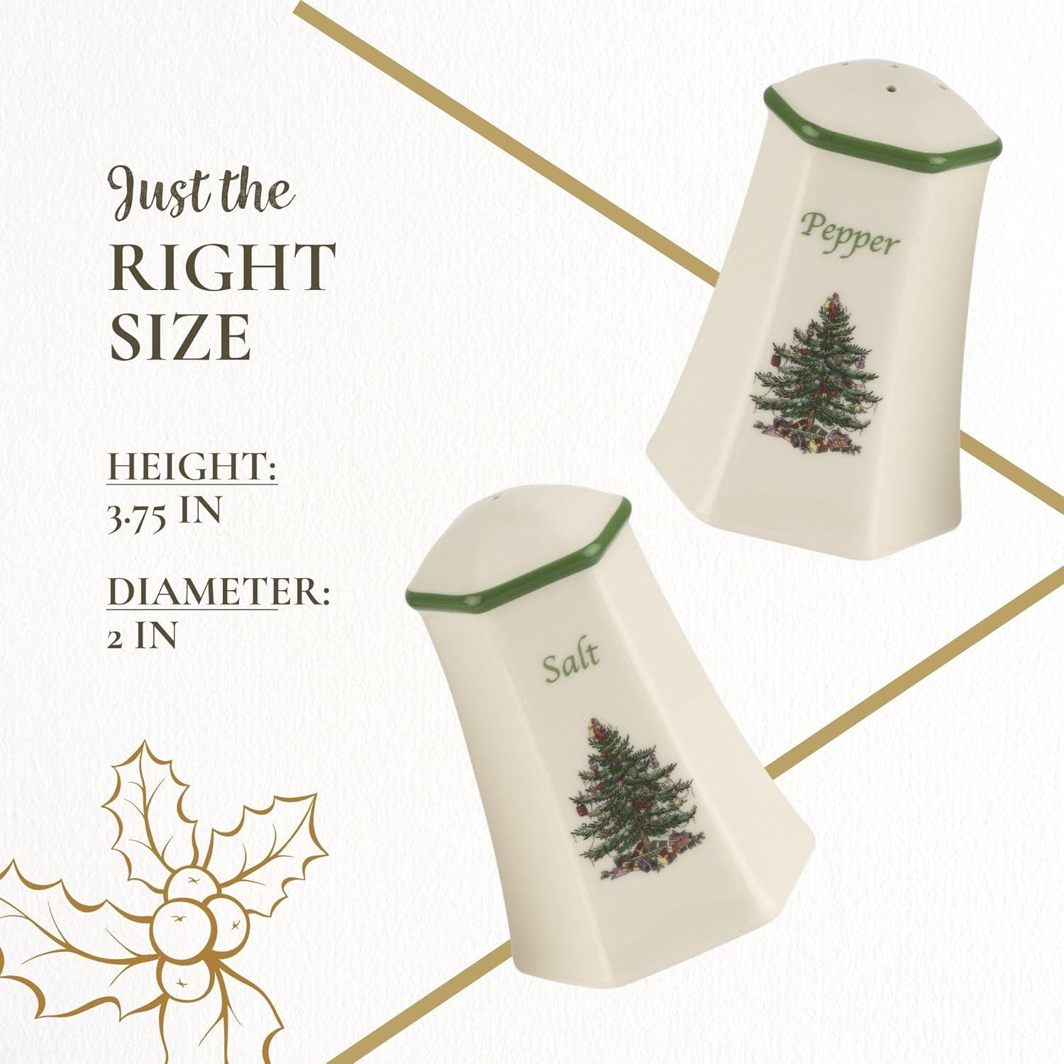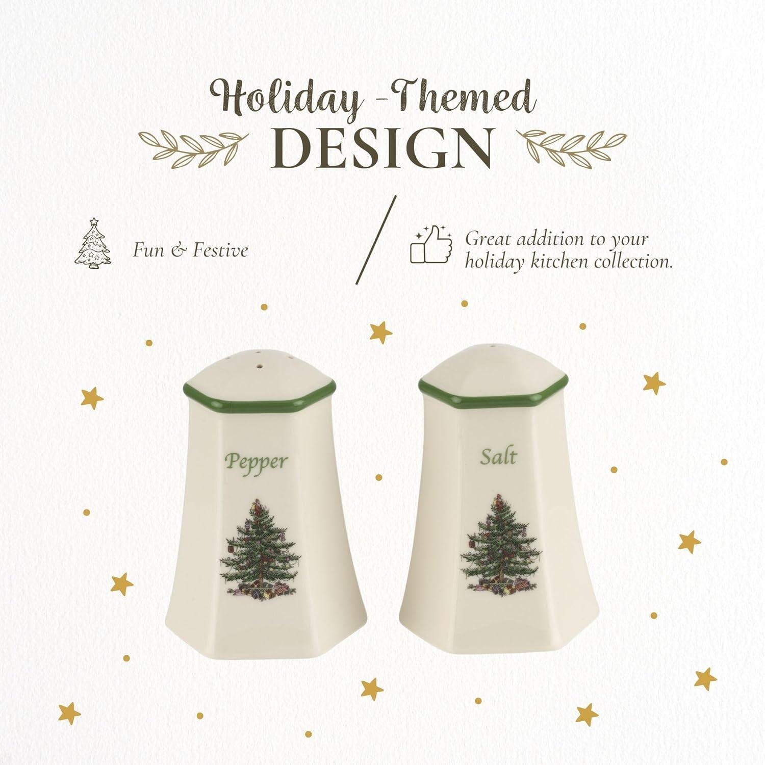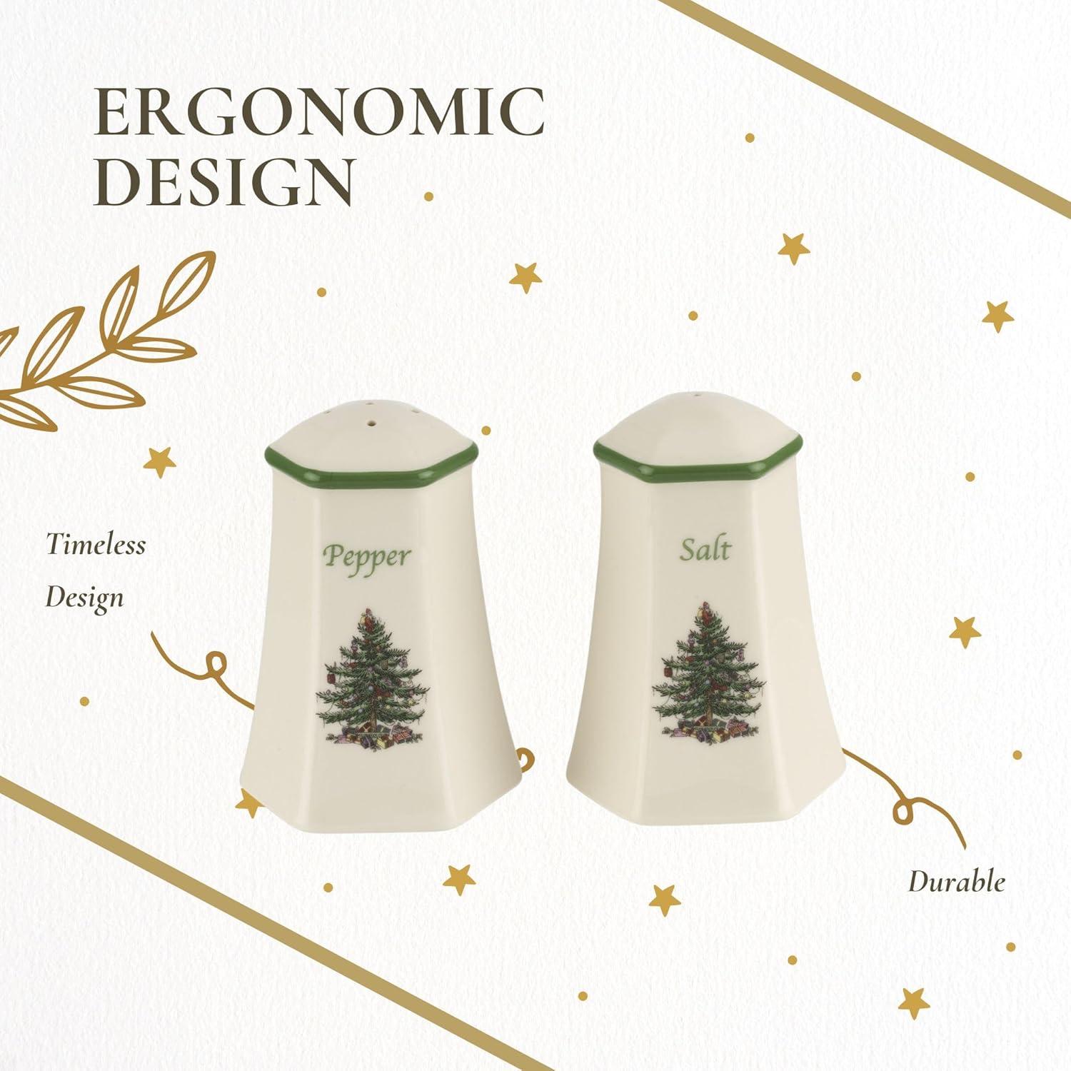 Classic Christmas Design: Featuring the beloved Spode Christmas Tree collection, these festive salt and pepper shakers bring nostalgic charm and seasonal warmth to any holiday table.