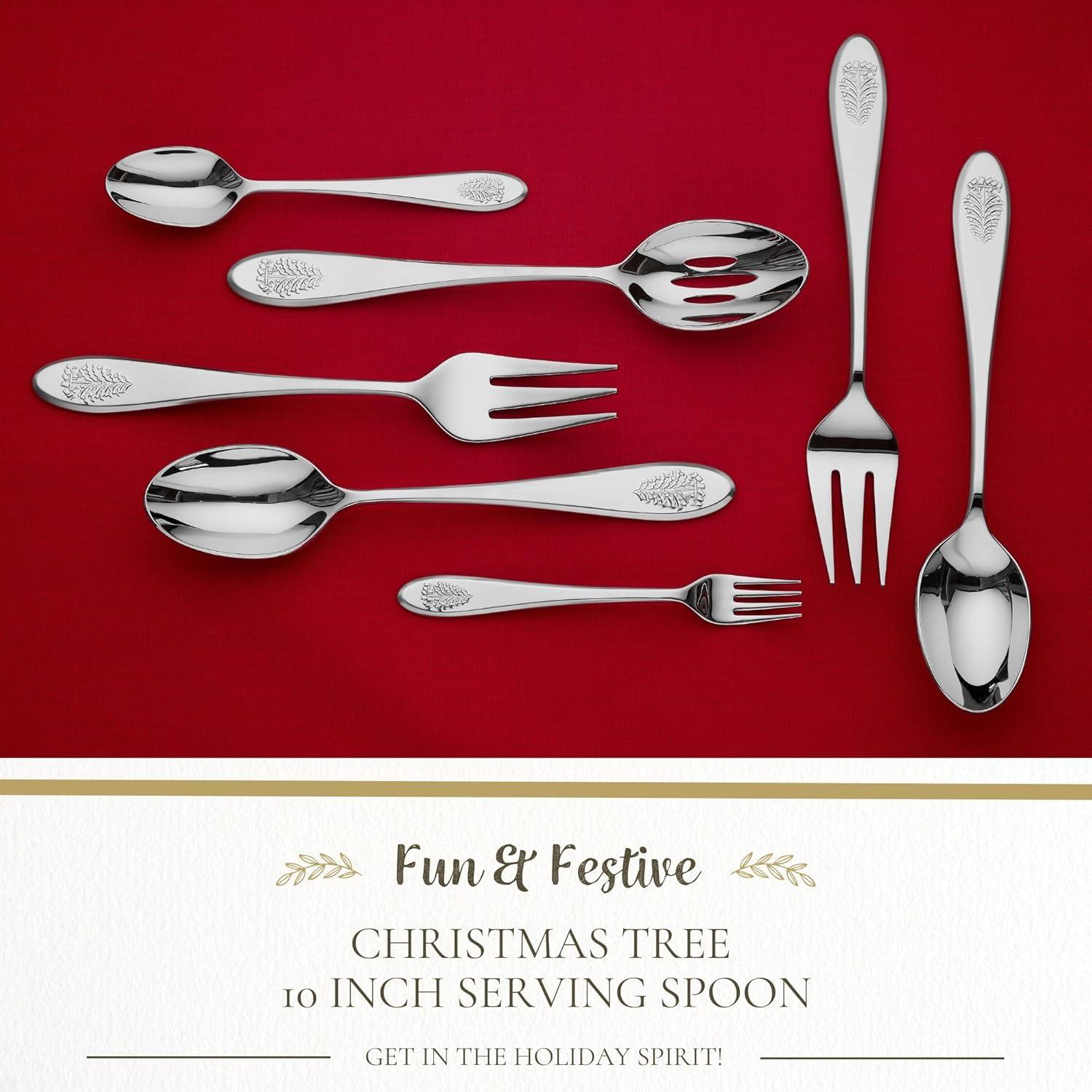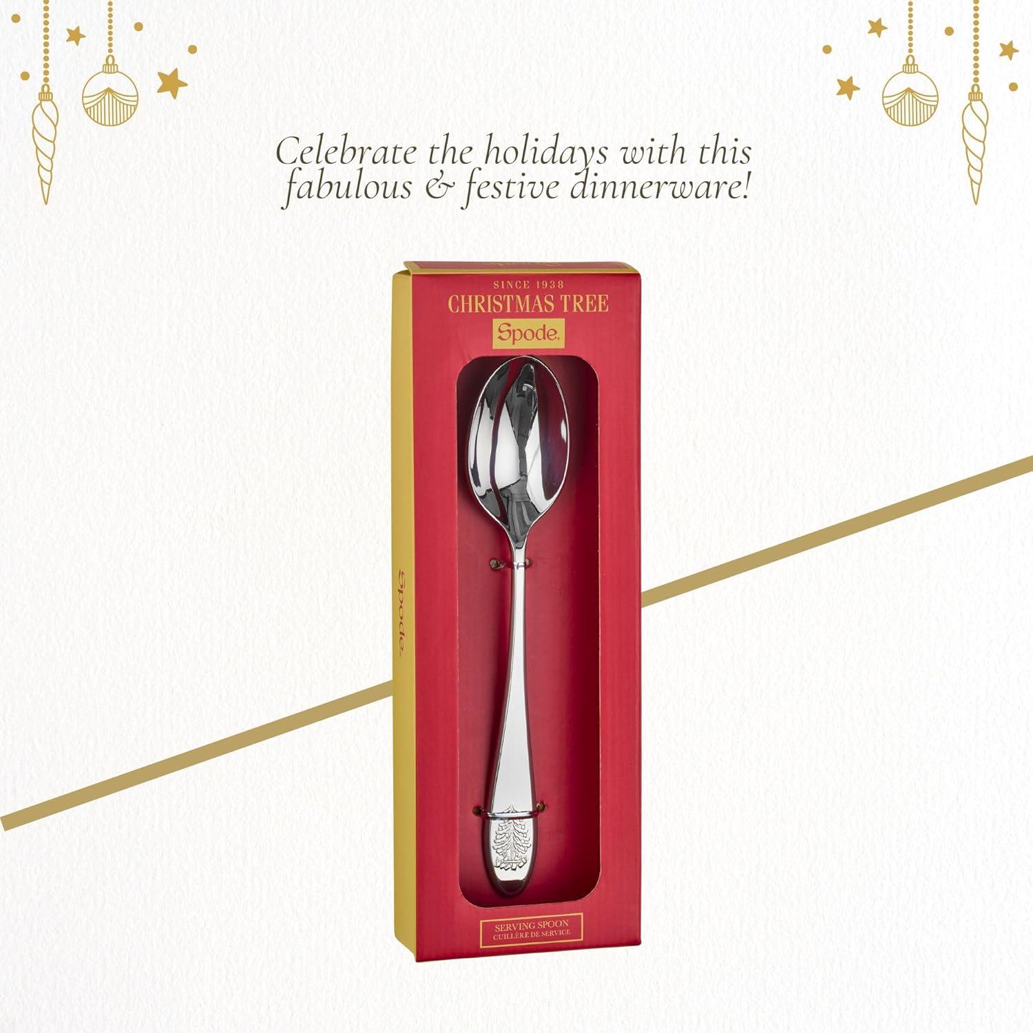 Spode Christmas Tree Serving Fork, Holiday Flatware for Your Favorite Christmas Dishes, 18/10 Stainless Steel Cutlery for Festive Table Settings, 10-Inch Dishwasher Safe Holiday Utensils(Serving Spoon)