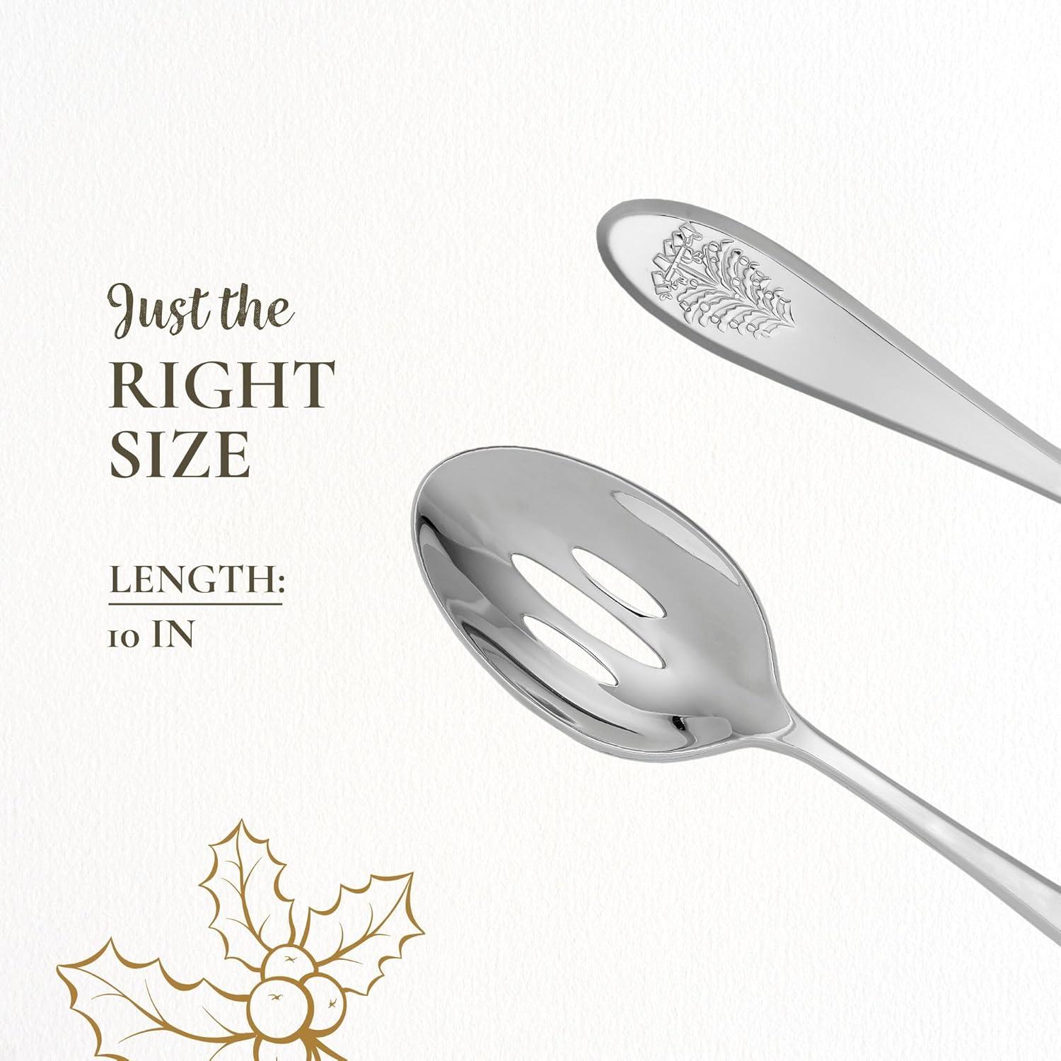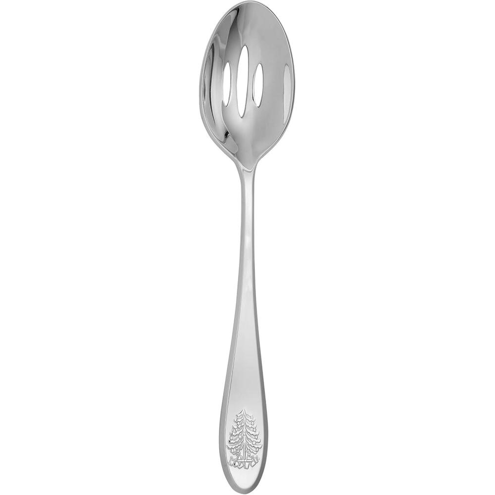Spode Christmas Tree Serving Fork, Holiday Flatware for Your Favorite Christmas Dishes, 18/10 Stainless Steel Cutlery for Festive Table Settings, 10-Inch Dishwasher Safe Holiday Utensils(Slotted Serving Spoon)