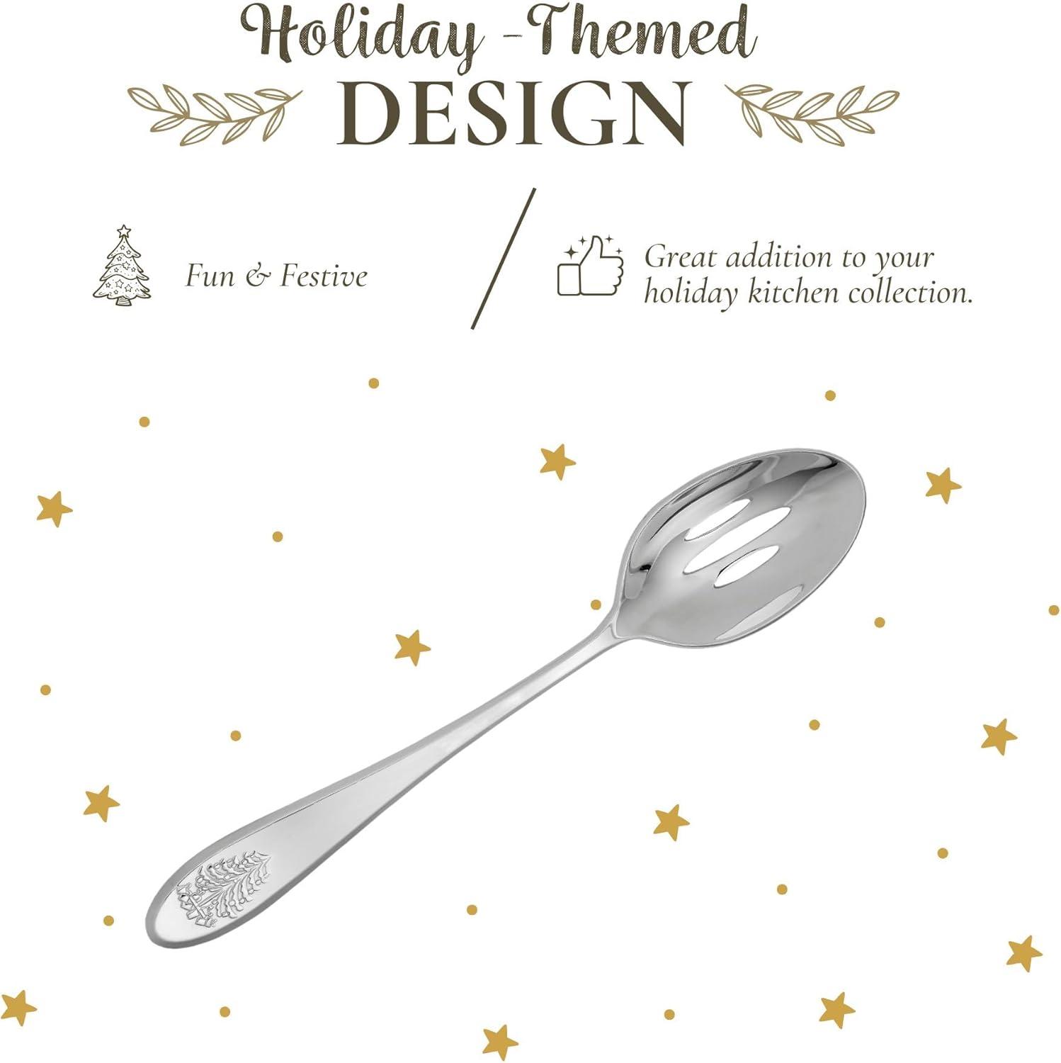 imageSpode Christmas Tree Serving Fork Holiday Flatware for Your Favorite Christmas Dishes 1810 Stainless Steel Cutlery for Festive Table Settings 10Inch Dishwasher Safe Holiday UtensilsSlotted Serving Spoon