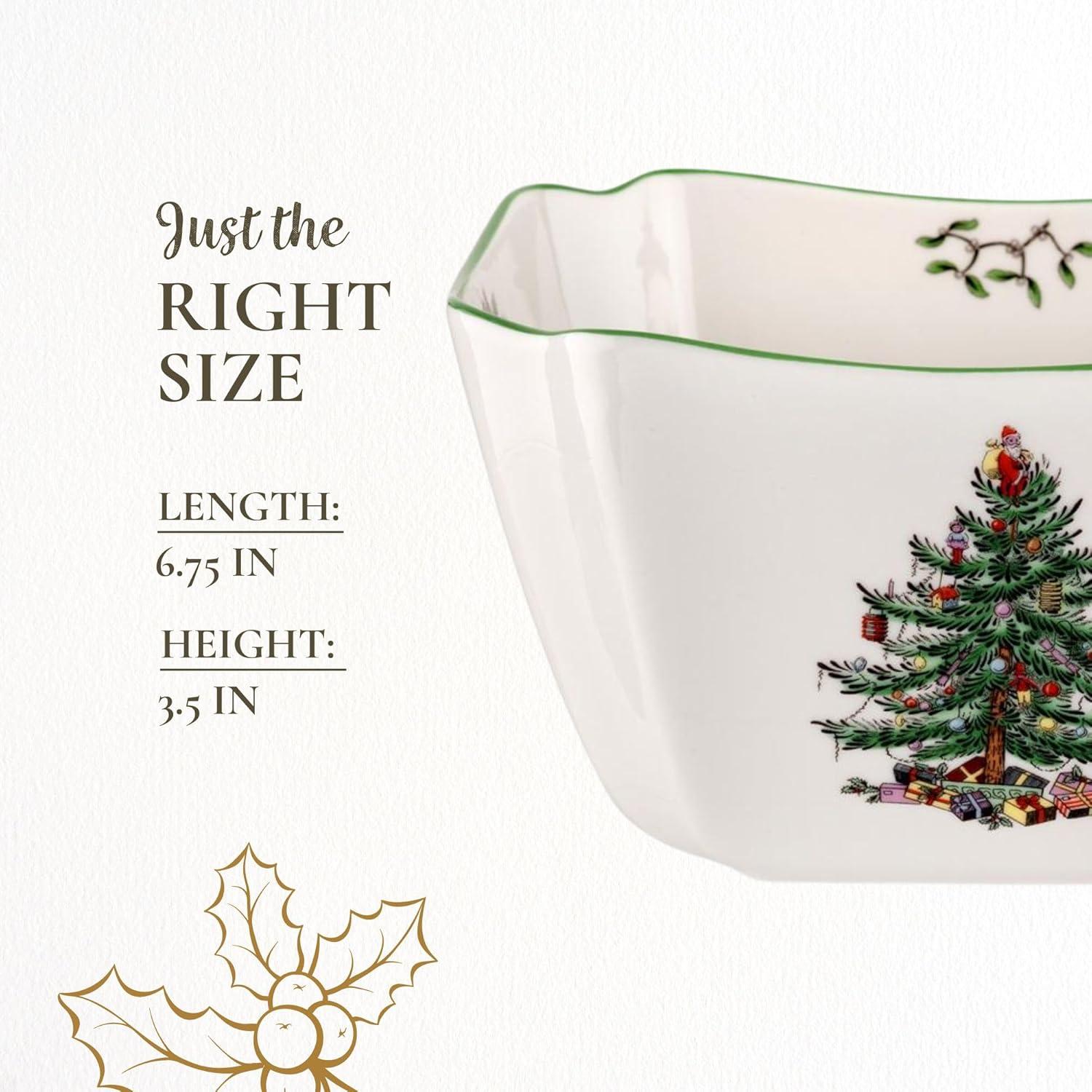 Celebrate Christmas Traditions: This Spode Christmas Tree Small Square Bowl brings the nostalgic charm of Christmas past to your home. The iconic holiday design, loved since 1938, adds a distinctive touch to every table, creating cherished memories.