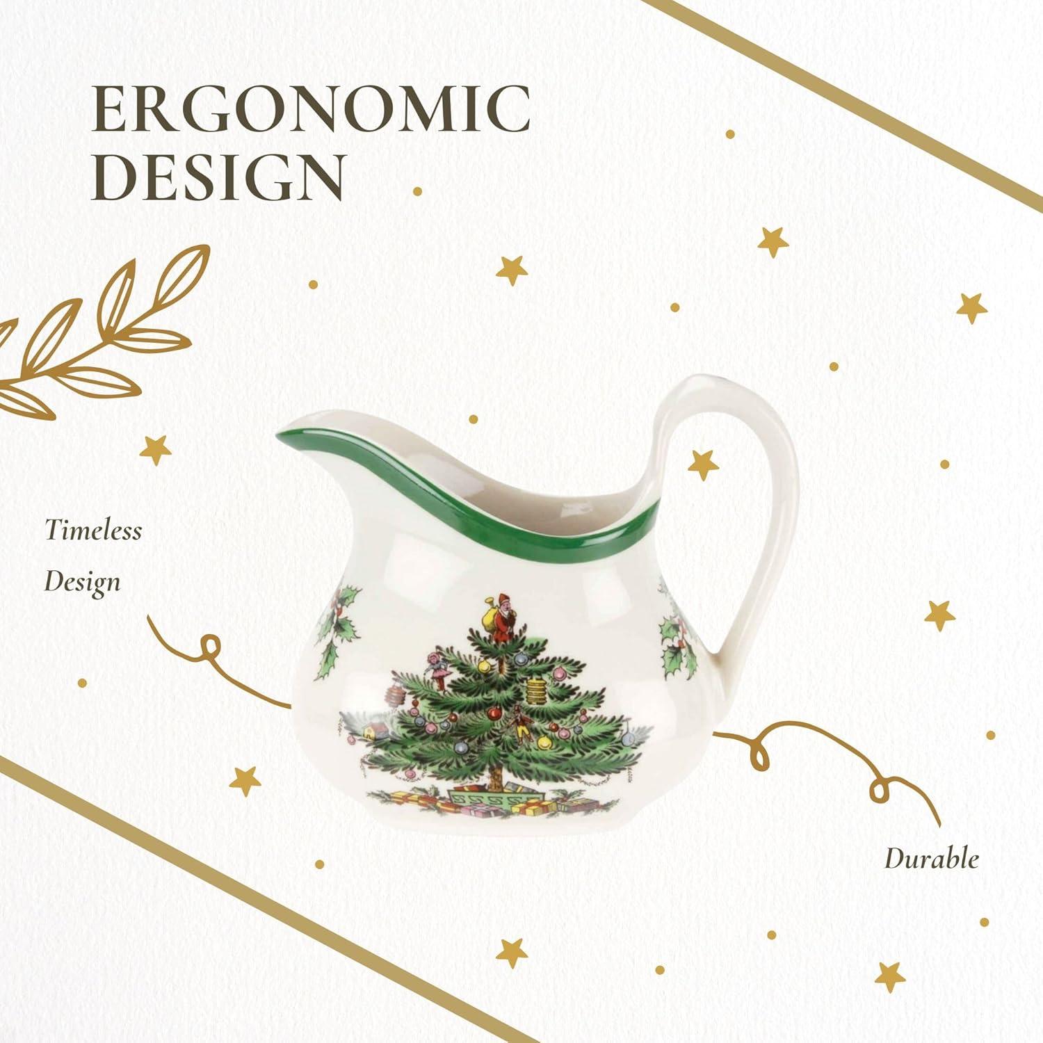 Nostalgic Holiday Design: Add festive charm to your table with the Spode Christmas Tree Collection. This charming sugar and creamer set celebrates traditions, featuring the Christmas tree design that has brought joy to holiday tables since 1938. .