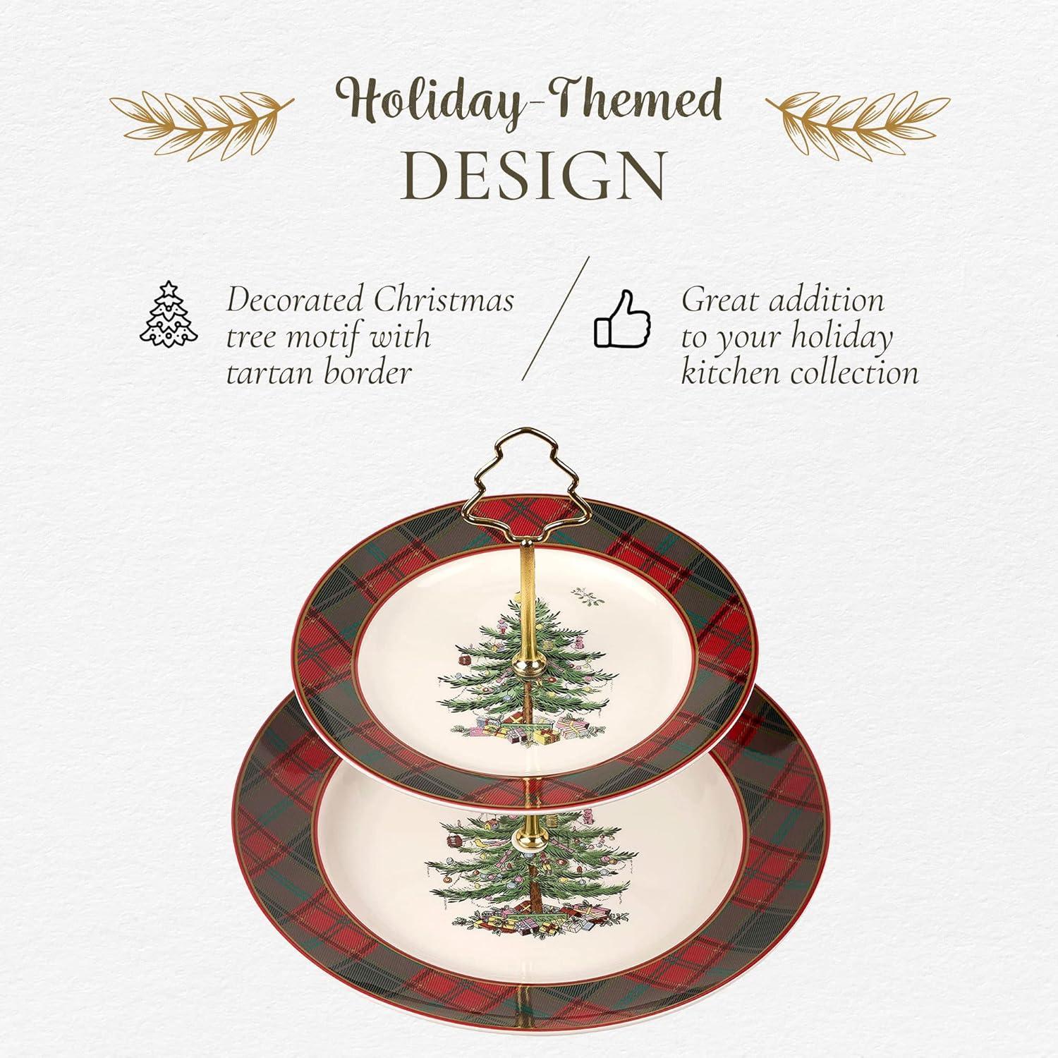 Thoughtful Holiday Gift: This Spode Christmas Tree Tartan 2 Tiered Server makes a wonderful gift for friends, family, or holiday hosts. Its festive design and collectible value make it a meaningful present that can be cherished and used during holiday celebrations year after year. .