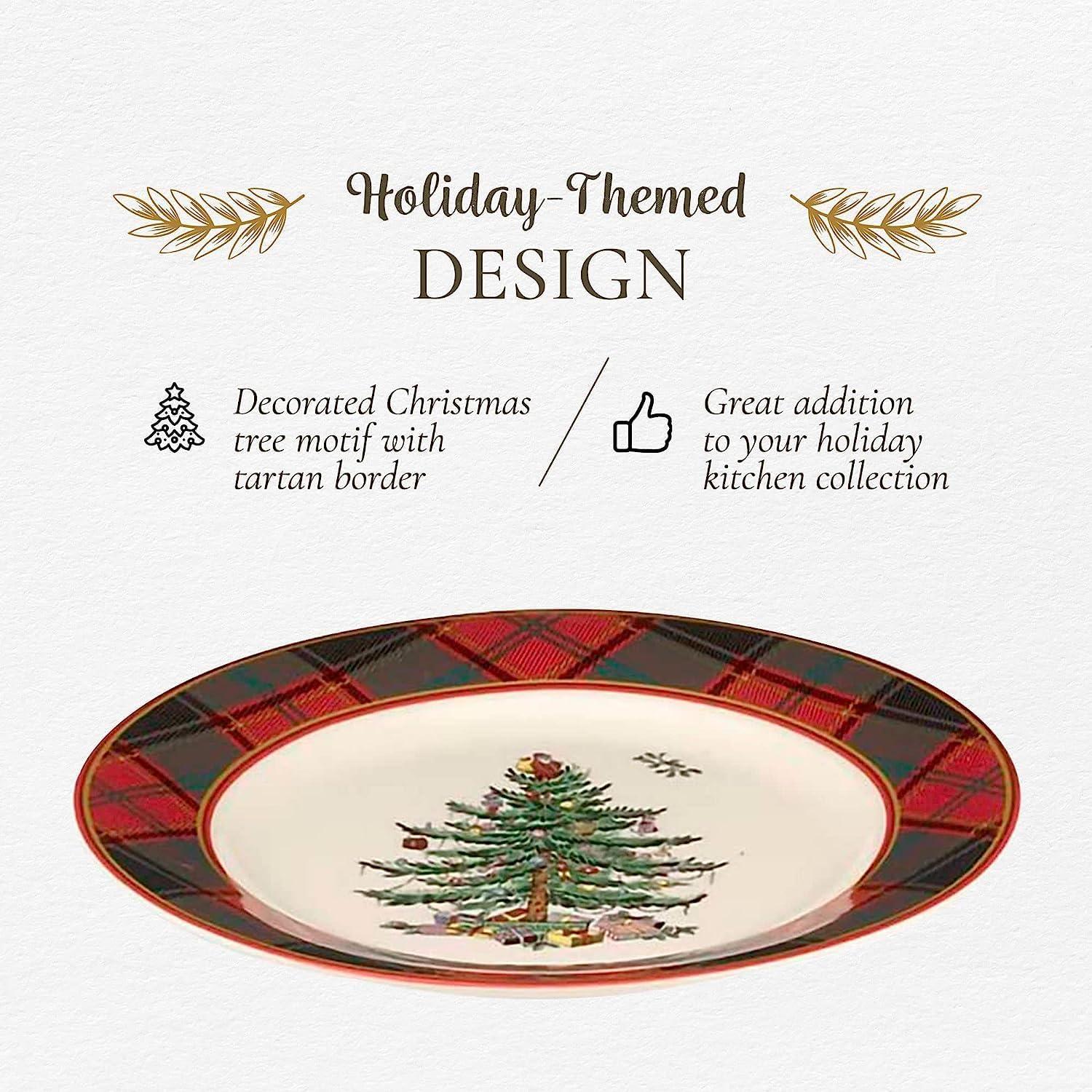 Fine Earthenware: This plate offers durability and style. It pairs beautifully with other pieces in the Christmas Tree Tartan Collection, making it a great addition to your holiday tableware. .