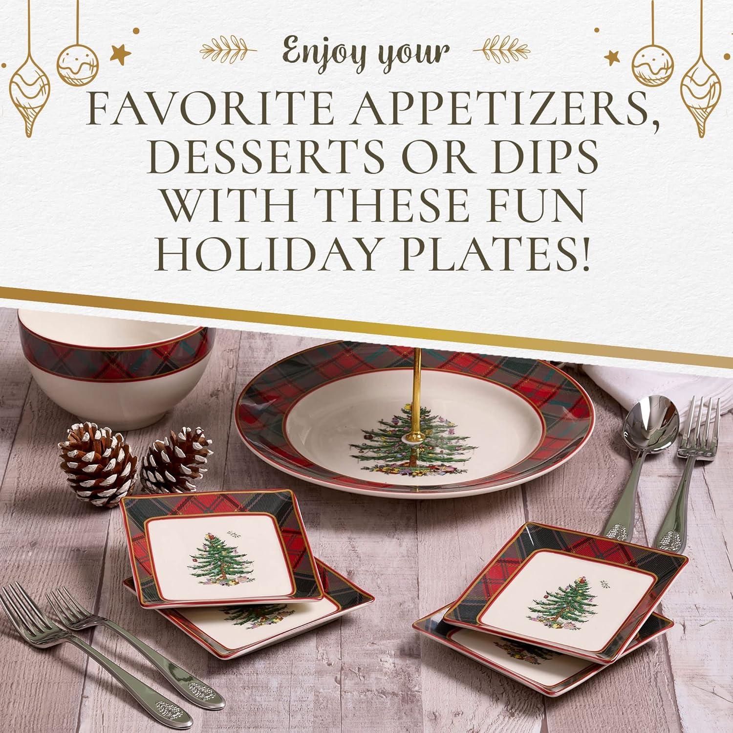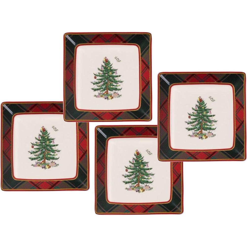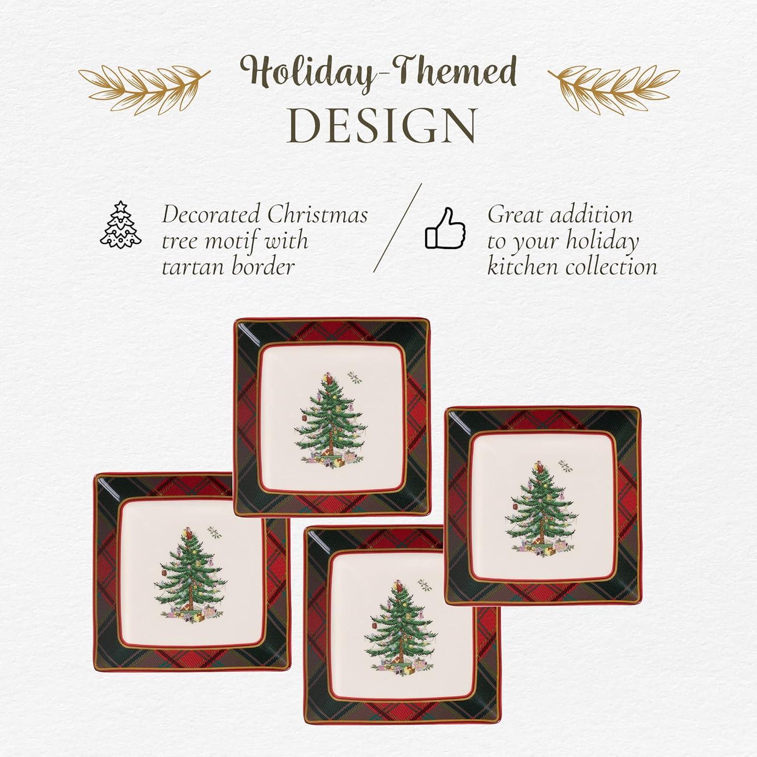 Sophisticated Rustic Appeal: The blend of the traditional Christmas Tree and tartan plaid border creates a refined yet cozy look, making these Mini serving plates a beautiful complement to your existing Spode Christmas Tree collection or the start of a new tradition.
