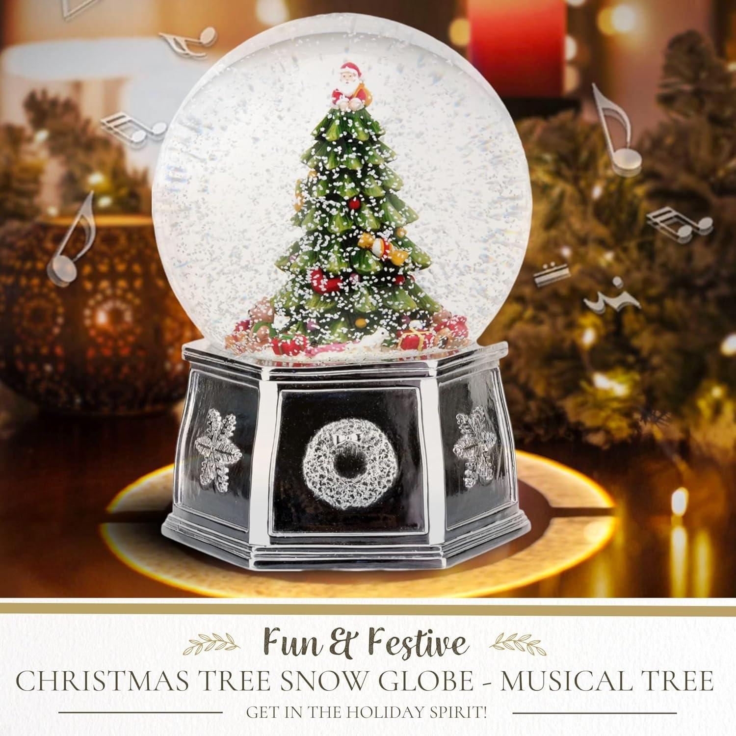 Spode Christmas Tree Winter Wonderland Snow Globe, Plays Soothing Music - Durable Dolomite, Personalized Collectible Great for Christmas, Weddings, Home Décor(Musical Tree Snow Globe)