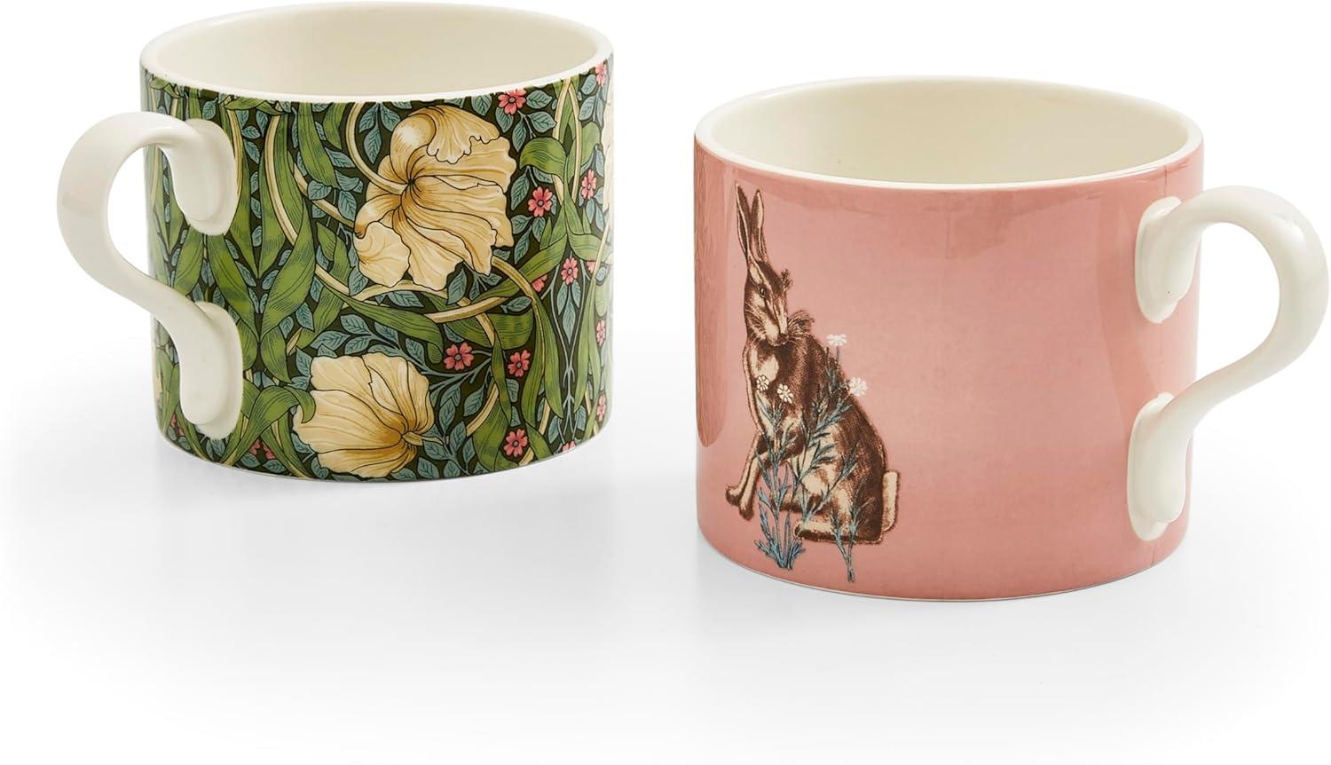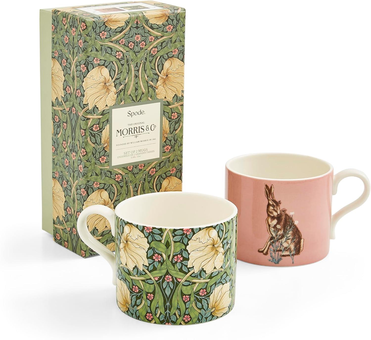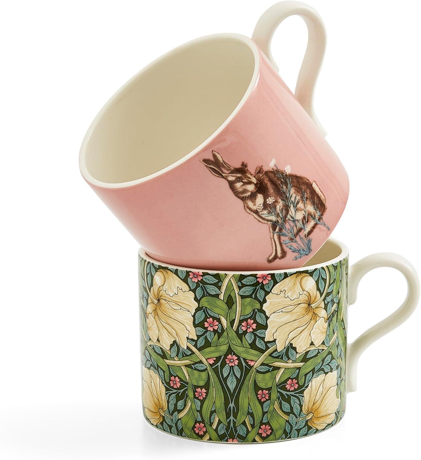 Spode Morris & Co 12oz Mugs, Set of 2 (Pimpernel & Forest Hare) - Microwave & Dishwasher Safe, Elegant Porcelain Drinkware for Coffee Bar or Giftable Home Kitchen Mug Set. Ideal for Coffee & Tea